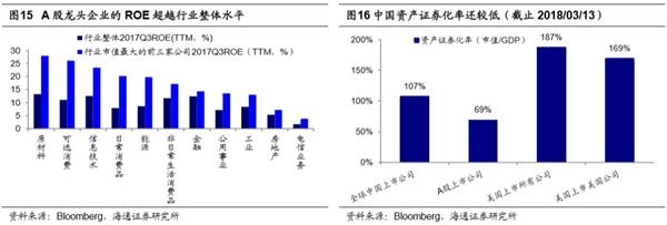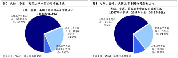 18年宏观经济增长韧性强,新时代盈利仍保持高增长。3月5日国务院总理李克强在政府工作报告中提出2018年GDP增长目标是6.5%左右。对比1990年以来政府工作报告中GDP增速的目标值和最终的实际值,可发现在多数年份中国GDP增速实际值超过目标值。进一步分析驱动经济平稳增长的动因,从支出法看,2017/2016年消费对GDP增长贡献率为58.8%/64.6%,投资为32.1%/42.2%,出口为9.1%/-6.8%。现在消费已经成为支撑经济增长的主力,消费本身有很强的韧性。《为何新时代经济平盈利上?——借鉴日本1970-80年代-20171027》等报告中我们就分析过,中国正步入经济平盈利上的新时代,日本也曾在1975-1989年经历过宏微观的分化。两者分化主要是源于:一是产业结构优化。产业结构优化核心在于代表中国新经济的信息技术、医疗健康等新兴行业占比不断上升,而这些行业盈利增长远高于传统行业。由于上市制度等历史原因,AB股公司中传统工业、金融地产占比过高,新兴行业市值占比17.7%。从全球看,新兴行业在全球范围内上市的中国公司中占比已不断上升,目前市值占比已达到22.0%。二是行业集中度提高。自2010年以来各个行业集中度不断提高,龙头公司盈利更强,中国工商注册企业约3000万家,3500多家上市公司是各子行业龙头。三是企业国际化加快,海外业务盈利贡献不断增加。新时代我国经济正在由大变强,重视质的提高,经济增长平稳,但企业盈利增速更快。我们预测2017/2018年A股净利同比将达到17.5%/13.5%,对应ROE(TTM)分别为10.3%/11%,预计2018Q1净利同比将达13%-15%。预测2017/2018年港股净利同比将达到16.4%/14.5%,对应ROE(TTM)分别为11.1%/11.7%。