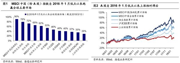 ①中国上市公司总市值有68.78%在A股、24.93%在港股、6.29%在美股,16年1月低点来A股涨幅较小,恒指涨71.98%,MSCI中国指数(除A股)涨90.37%,跑赢全球各大指数。