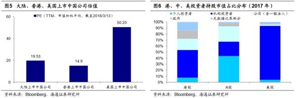 ②港股盈利趋势与A股相同,走势更强源于估值低、机构投资者为主,验证了中国经济基本面扎实。美国中概股走势牛源于绩优的新兴行业占比更高,反映了中国经济转型有效。
